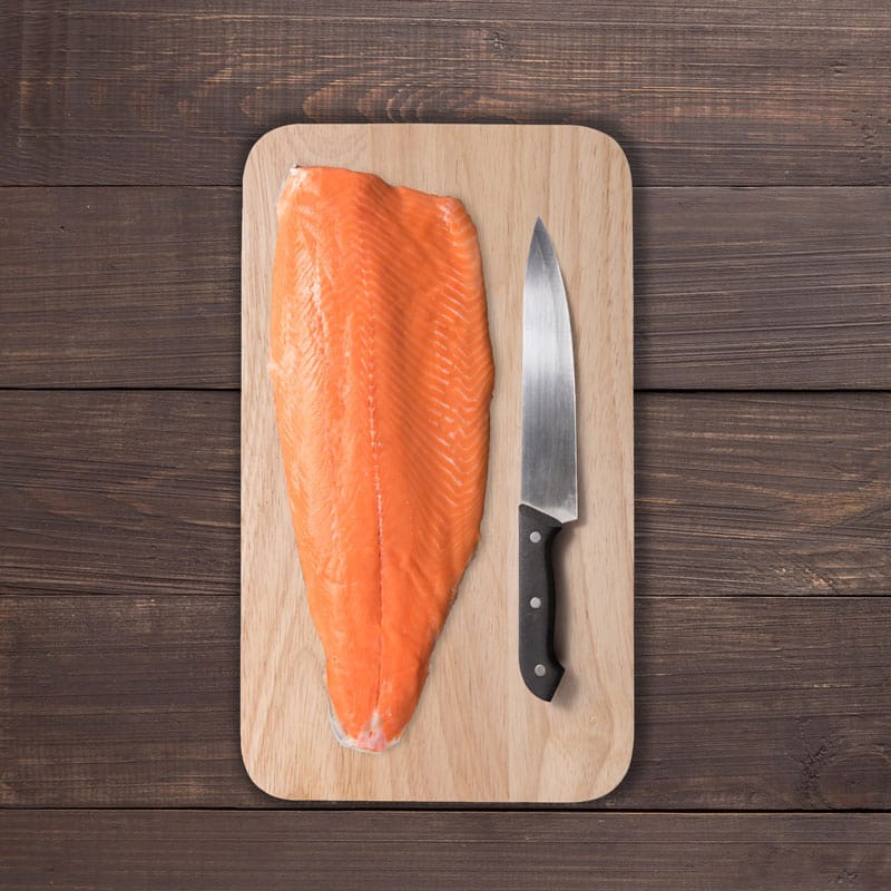 Peça de salmão fumado de primeira qualidade com pele e sem pré-corte. Ideal para cortar como quiseres: em filetes, cubos, porções… e desfrutar de um sabor autêntico.