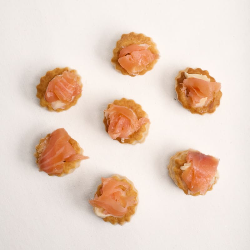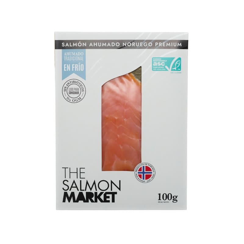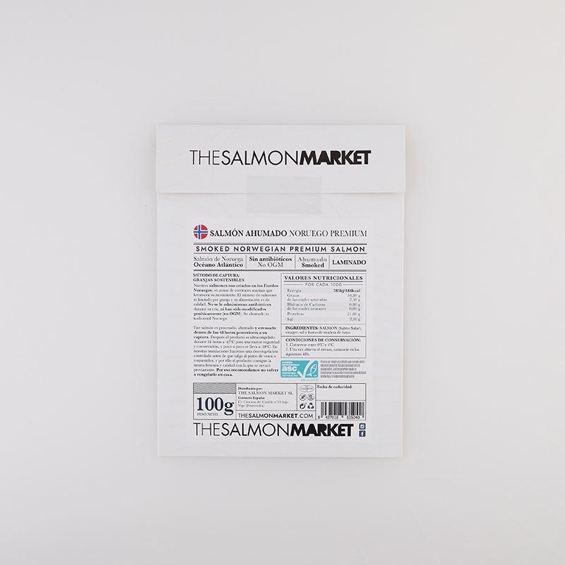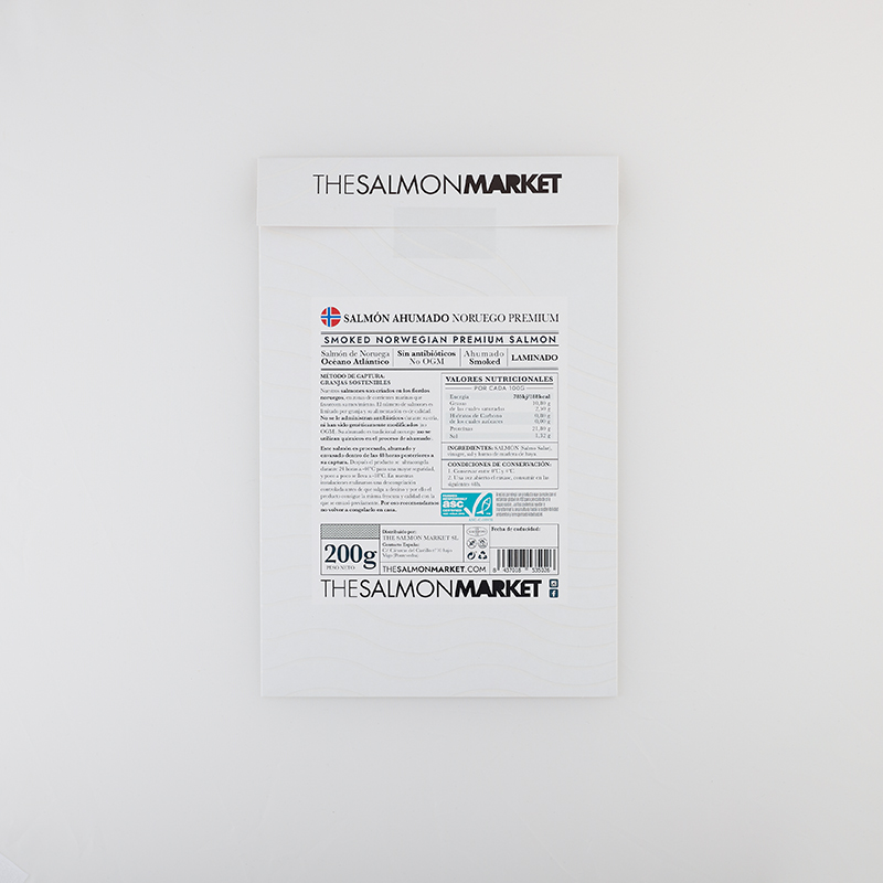 Salmão fumado de forma tradicional, seguindo o método tradicional das aldeias do norte da Noruega. A composição das madeiras e ervas utilizadas no processo de fumagem é um segredo transmitido de pai para filho, resultando num salmão com um sabor e aroma únicos.
